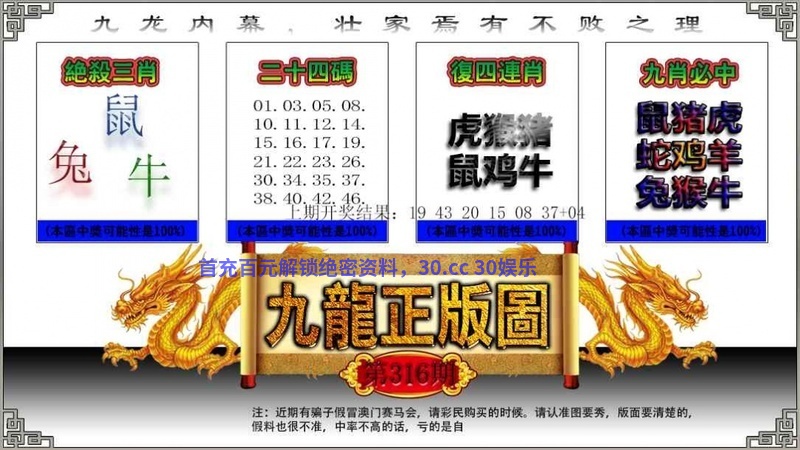 | 318期:四肖 | 鼠牛龙鸡 | 开:鼠06中 |